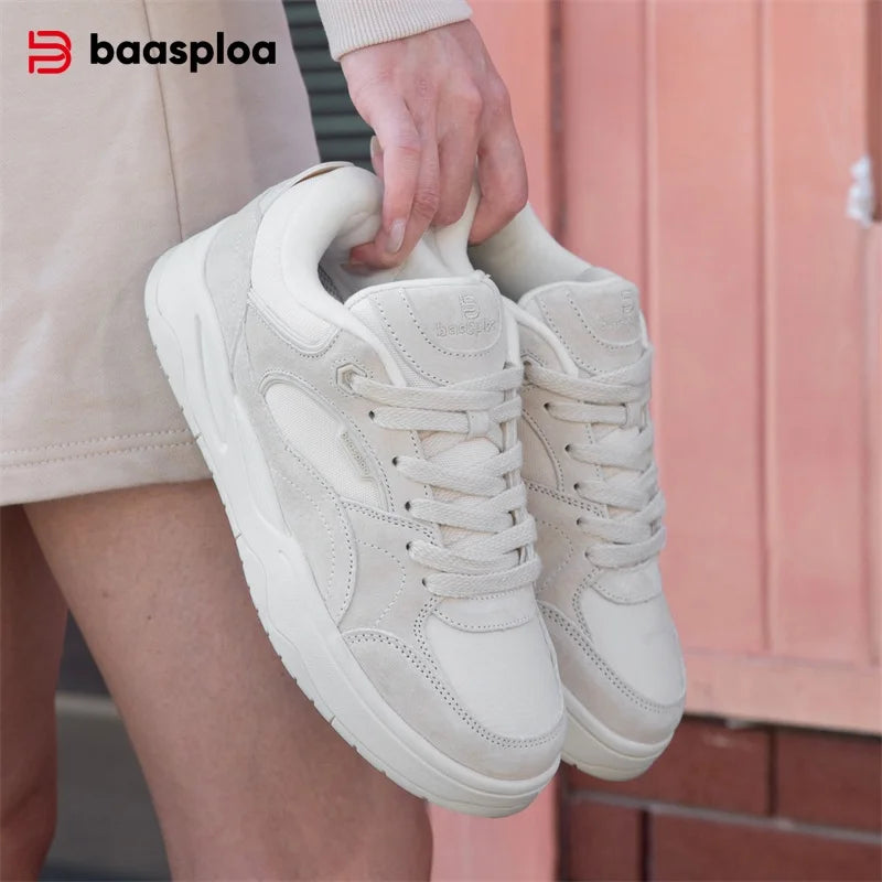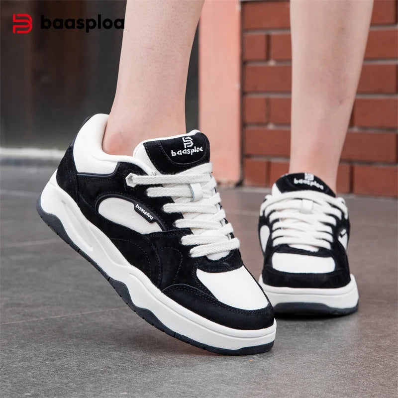 Baasploa Women Skateboarding Shoes Comfort Leather Casual Sneakers H1079
